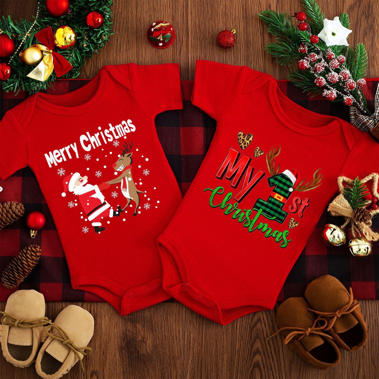 Make Baby's First Christmas Extra Special! 🎄❤️ Dress your little one in festive cuteness with our adorable Merry Christmas Red Deer Baby Romper. Perfect for holiday photos, family gatherings, and creating precious memories that last a lifetime. Why Parents Love This Romper: Festive Red Deer Design - Charming Christmas theme that's picture-perfect Soft Polyester Fabric - Gentle on baby's delicate skin, comfortable all day Easy Diaper Changes - Convenient triangle jumpsuit design with snap closures Gender Neutral - Perfect for both boys and girls Multiple Sizes Available - S (0-3 months), M (3-6 months), L (6-9 months), XL (9-12 months) Short Sleeves - Ideal for indoor celebrations and layering 🎁 FREE SHIPPING on all orders! Product Details: Material: Soft polyester fiber Style: Triangle jumpsuit with snap closures Sleeve Length: Short sleeve Weight: 85g - lightweight and comfortable Create magical holiday moments with this sweet Christmas outfit. It's not just a romper—it's the backdrop for memories you'll treasure forever! 📸✨ Package Includes: 1 x Baby Jumpsuit Romper